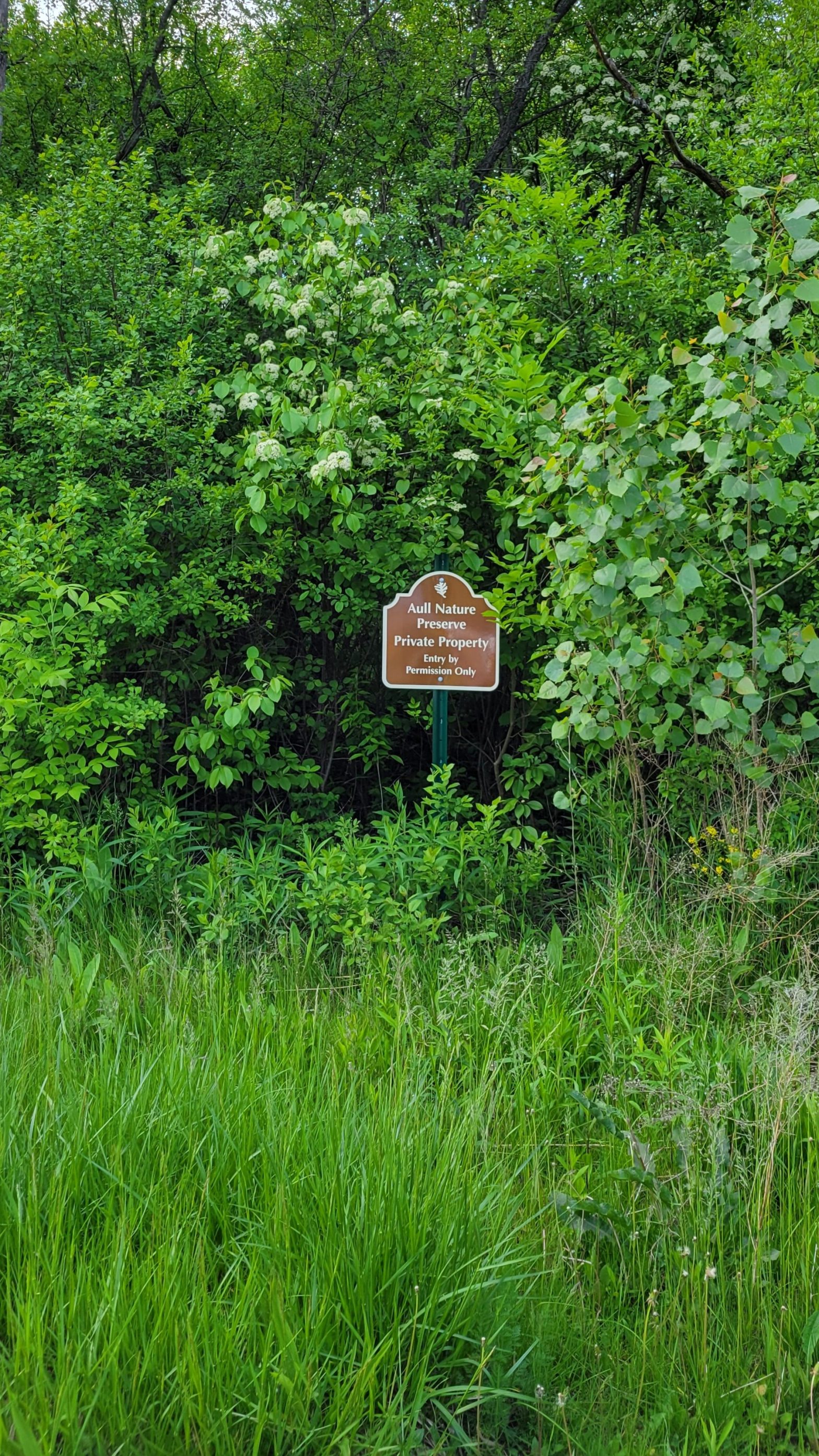 We were able to put the signs up and met the wonderful neighbors. All were happy to see the property become a preserve for nature. It was fun to hear their experiences with living so close to the Aull Nature Preserve. One neighbor said her kids would skate on the pond in the winter and her son would float on it during the summer. She thinks it is approximately 3 feet deep.