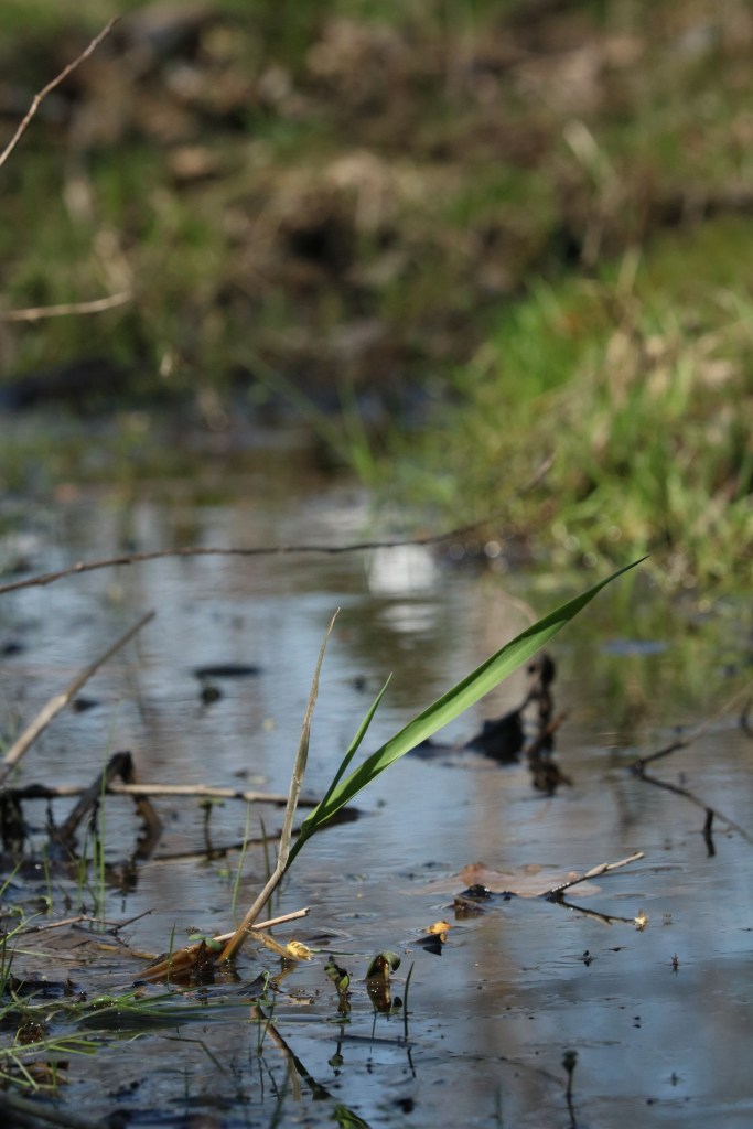A healthier native plant community also supports the well-being of native wildlife, which have become more active as the weather gradually warms. Red-winged blackbirds (Agelaius phoeniceus), American robins (Turdus migratorius) and a white-breasted nuthatch (Sitta carolinensis) flocked together in February. The area saw significant rainfall in March and about 80% of the property was submerged—great news for ANP’s western chorus frogs (Pseudacris triseriata). Their calls, which sound like someone running their thumb along the teeth of a comb, were heard in late March.