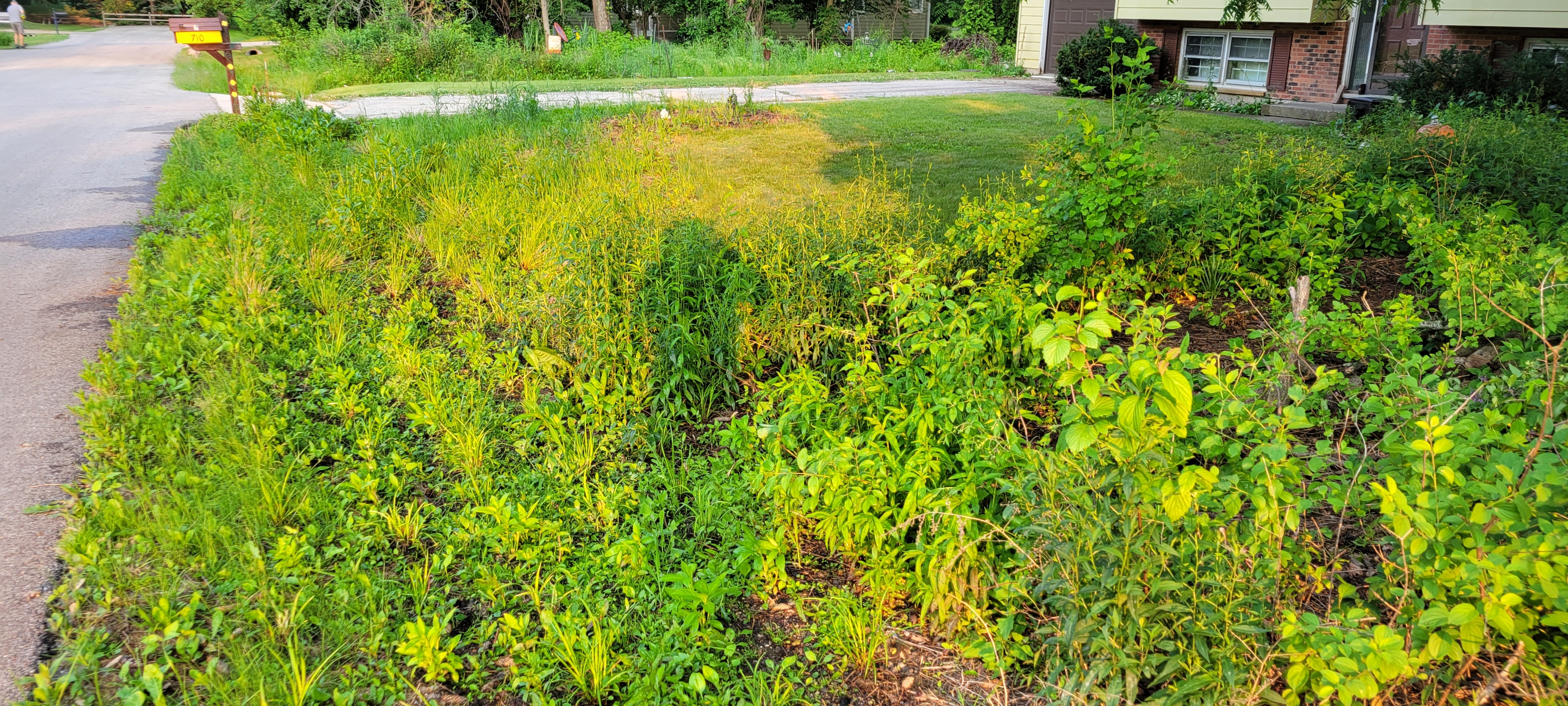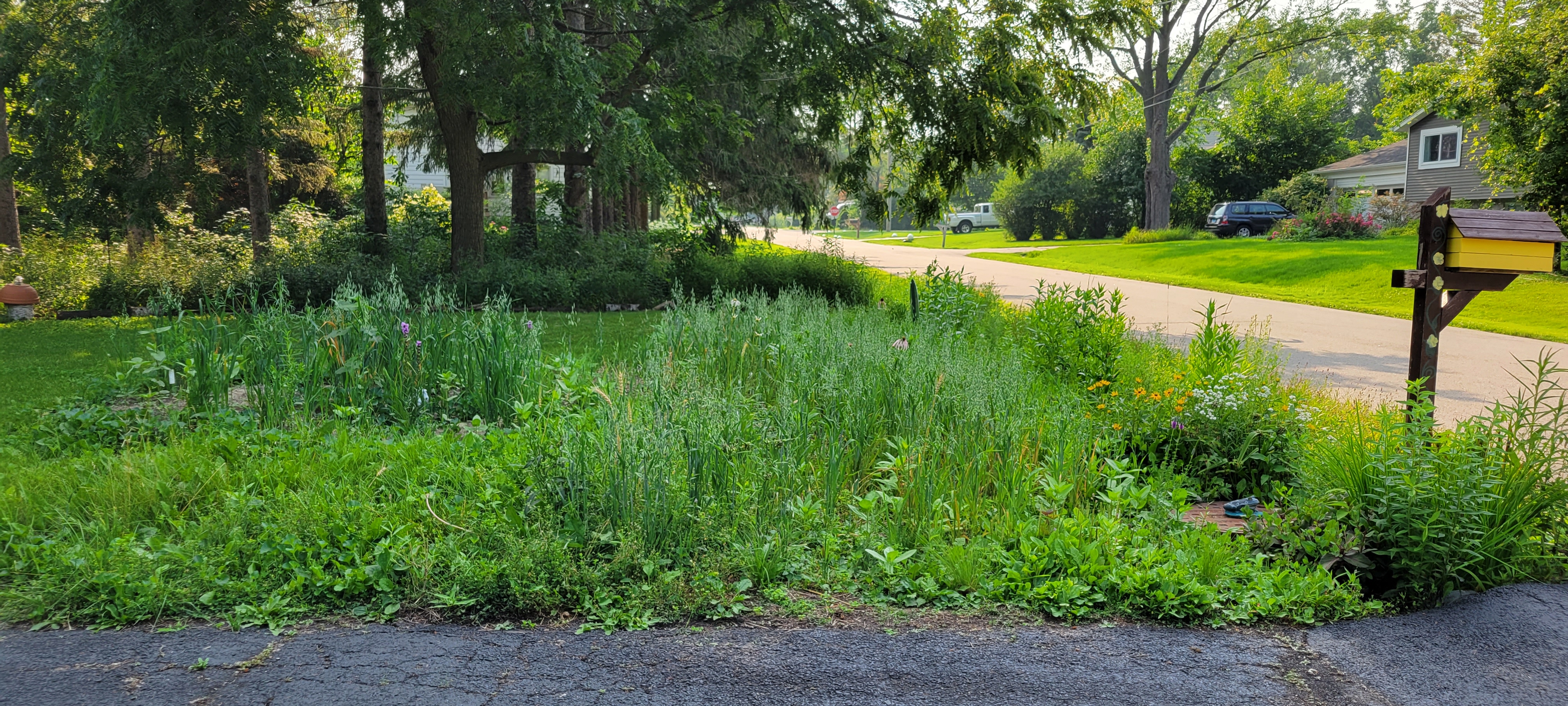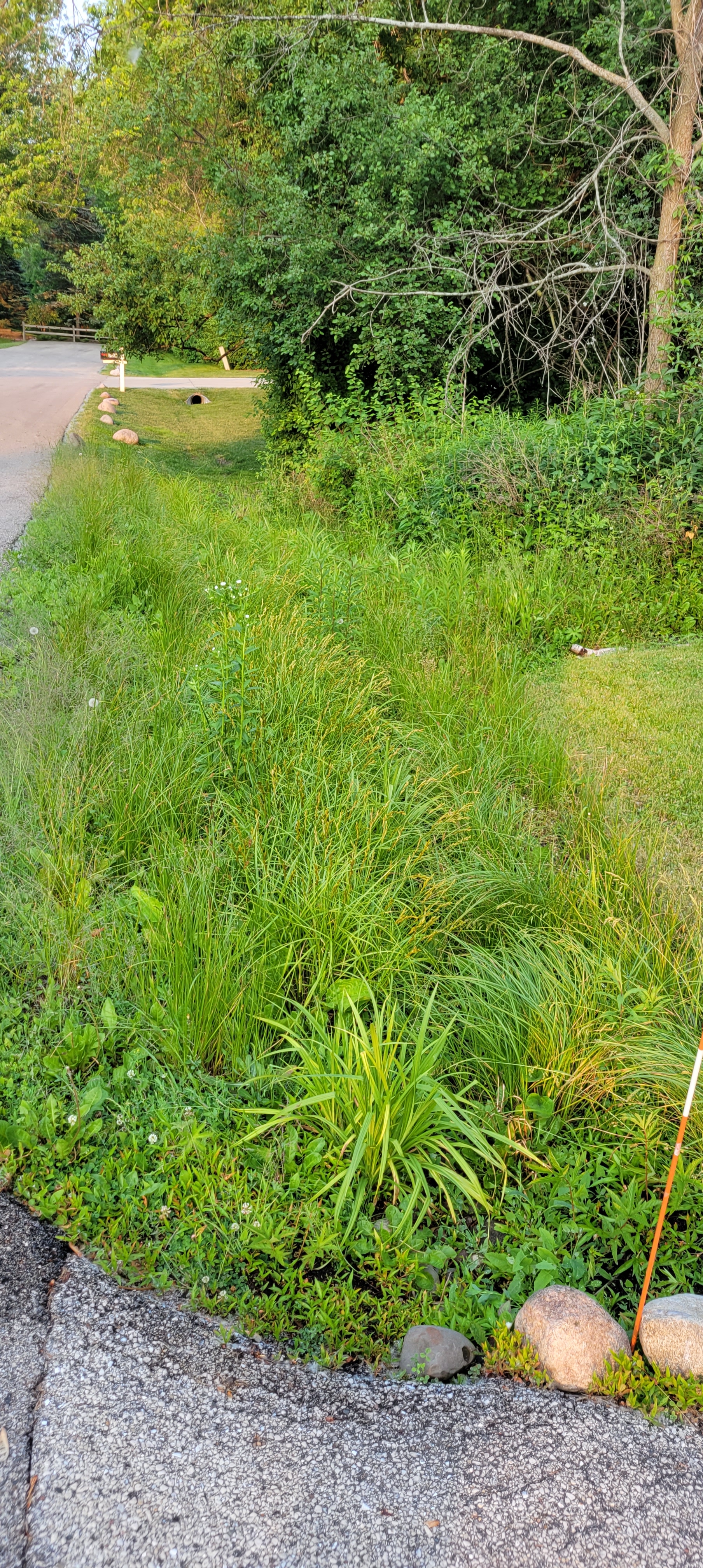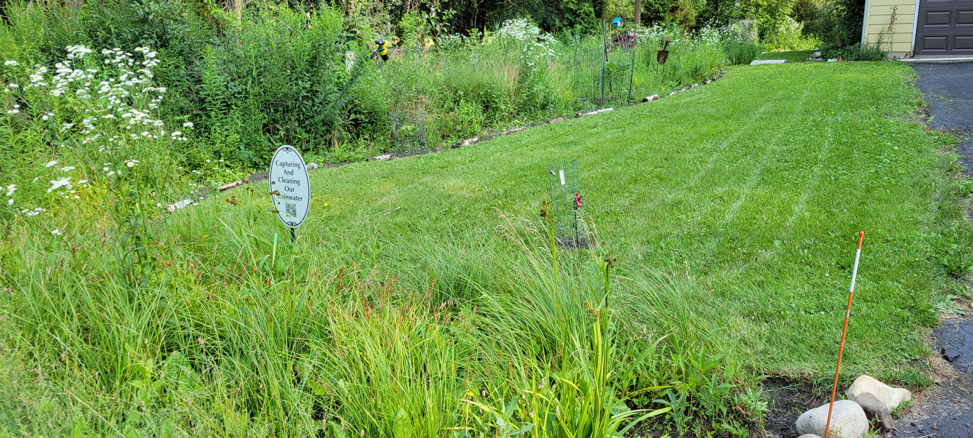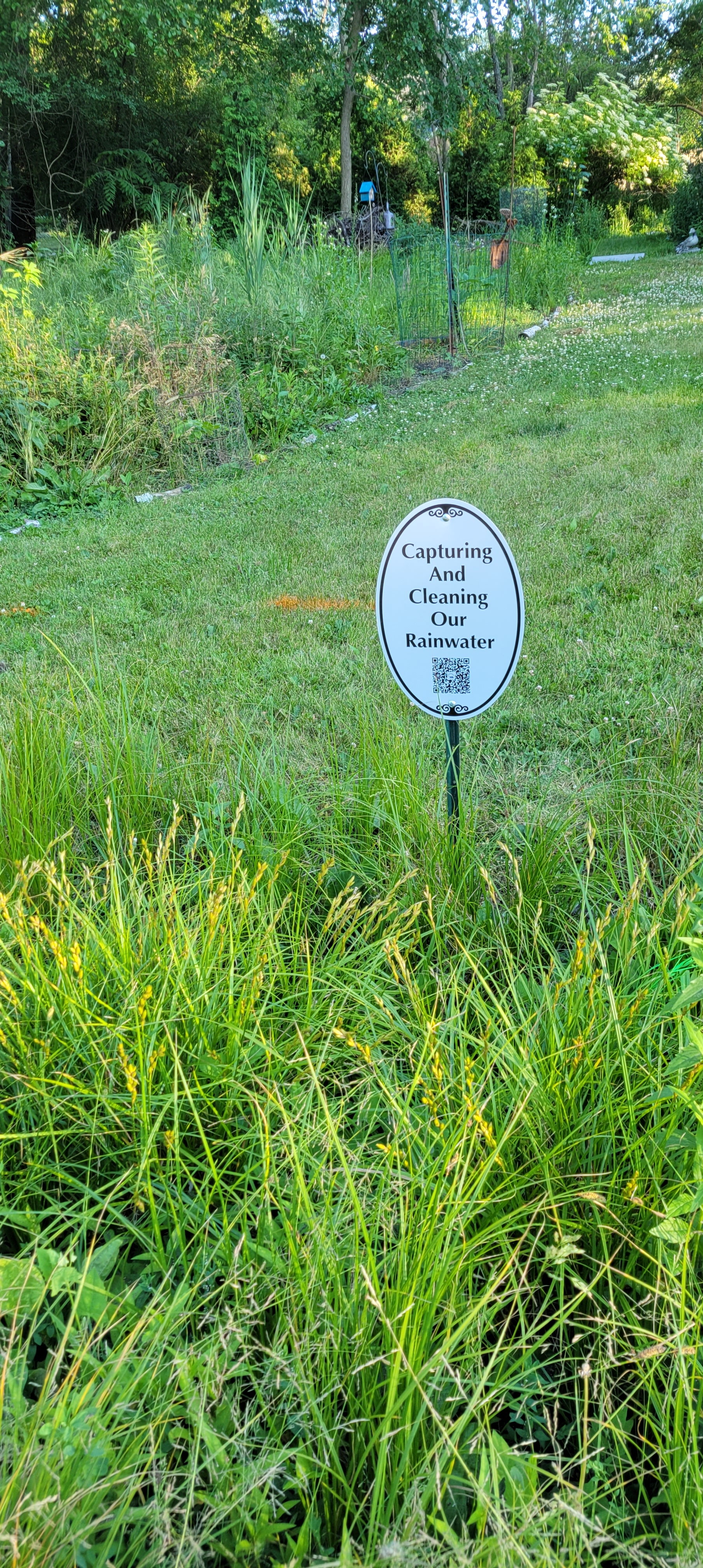 In 2022 we planted native plants in our stormwater ditch. It is doing a great job slowing the flow of stormwater, allowing the rainwater to be absorbed into the ground, and the wildlife thrives with the native vegetation.